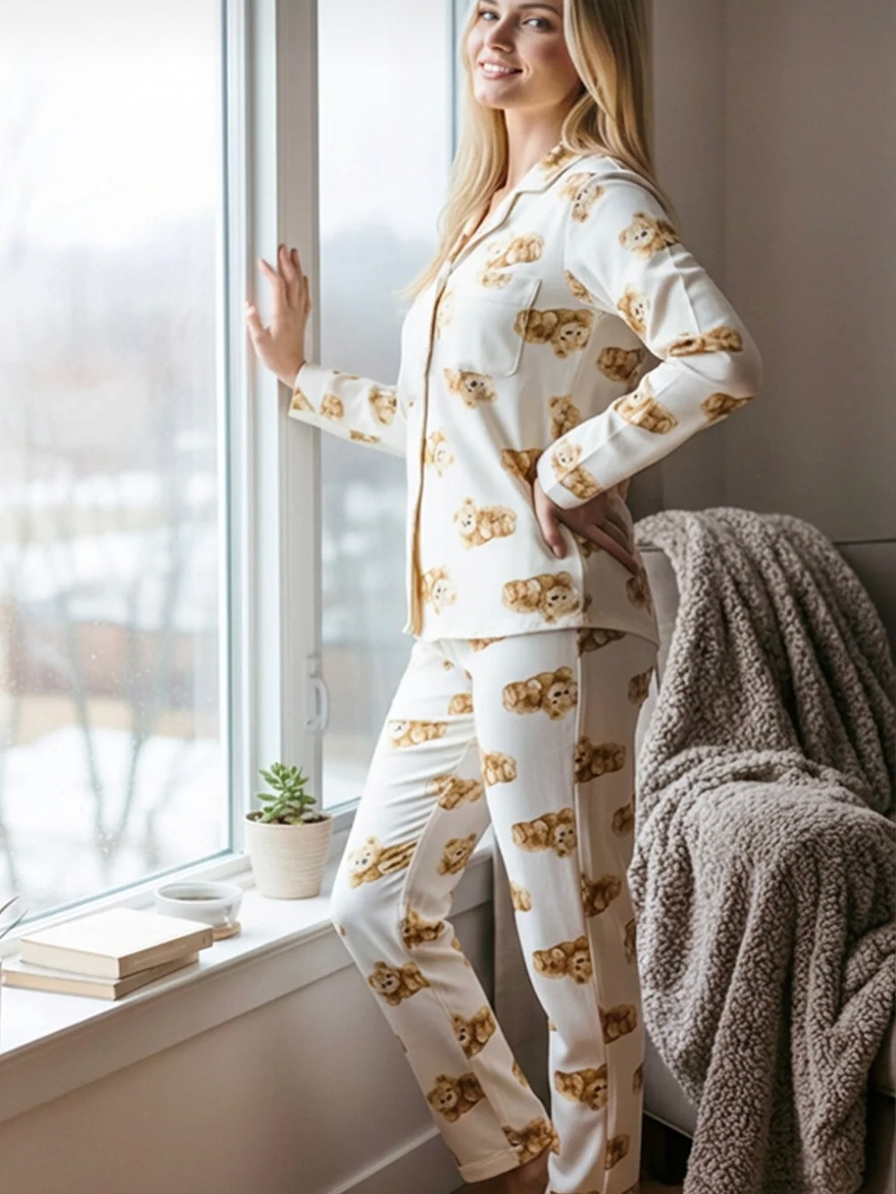 Düğmeli üst tasarımı klasik pijama şıklığını yansıtırken, eğlenceli ayıcık desenleri ürüne modern ve tatlı bir hava katar. Evde dinlenme, uyku ve günlük ev giyimi için uygundur.