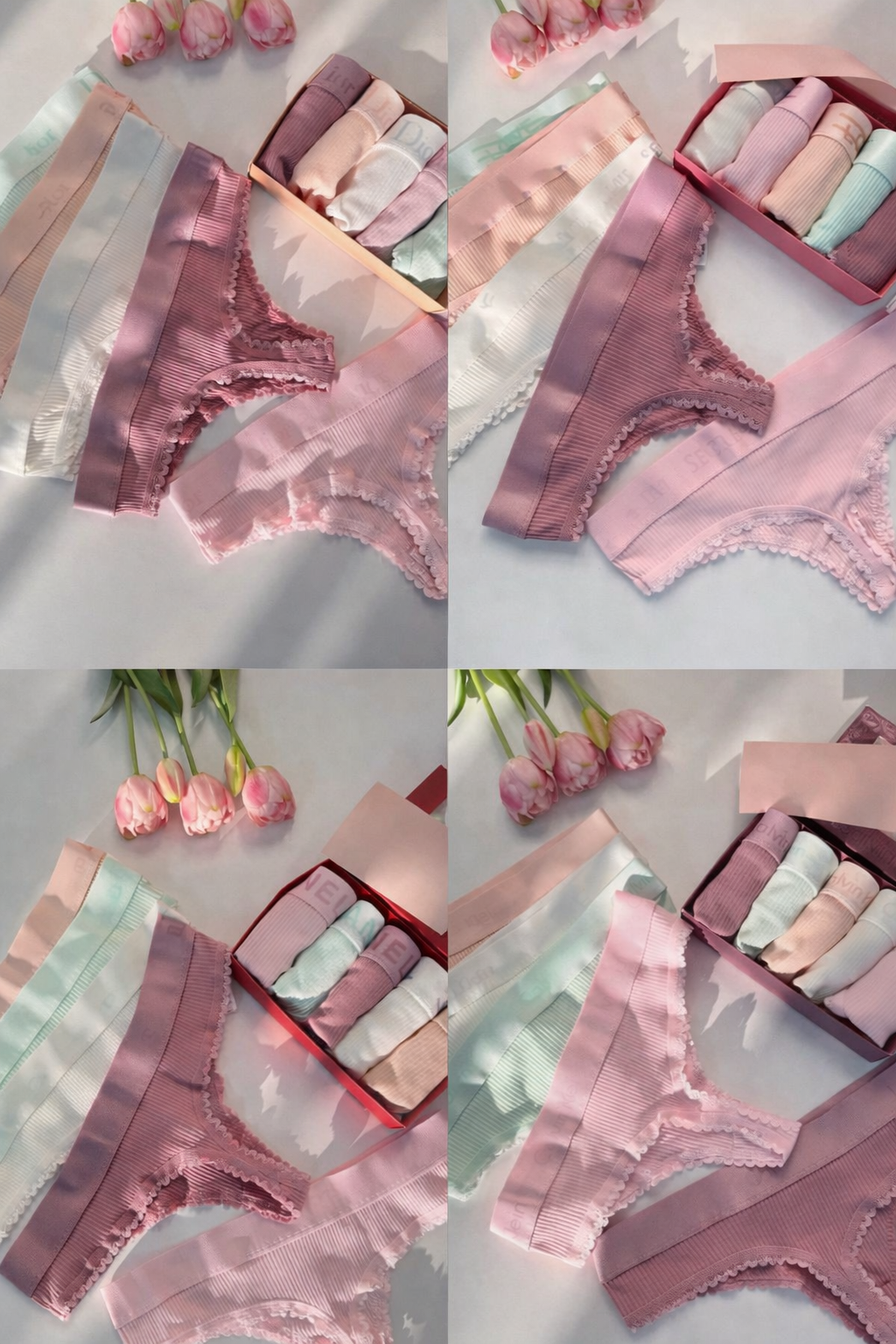 Kadın Dantelli Pamuklu Külot Seti (Pastel Seri)